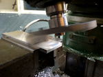 A few years ago I'd made a 6" diameter fly cutter for machining cylinder heads so would be perfect for this job. Logic said that if I angled the cutter the right amount I'd be able to machine the 10" radius I needed for the block. I'd love to be able to say that I did the calculations on the back of cigarette packets, but I cheated and found an old DOS program online that did all the work for me. Angling the cutter to 16.7 degrees would give me the radius I needed. Sure there'd be a slight error in the radius, but not enough to make a significant difference. A few passes of the cutter and the dressing block was done. All I need to do now is attach some sandpaper with double sided tape.With a few more tea breaks available before having to down tools for the weekend I decided to remake the temporary neck block. The one I made previously was OK for some jobs but wouldn't be any use when it came to tensioning the neck to remove the warp and bow. This new neck block is far more substantial and includes a couple of support blocks to take the strain off the mounting screws when it comes to bending the neck straight. Eventually this block will be bolted into place on the neck jig I intend to make in the near future.